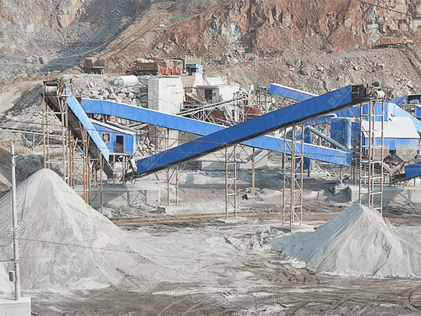 配合方案三:3YK2870矿山振动筛 (3台)+ZSW490x130振动喂料机+HD110pe颚式破碎机+PF1320反击式破碎机(2台)+DPC单段破(2台)+不同性能型号的运输机,成品为05石粉。