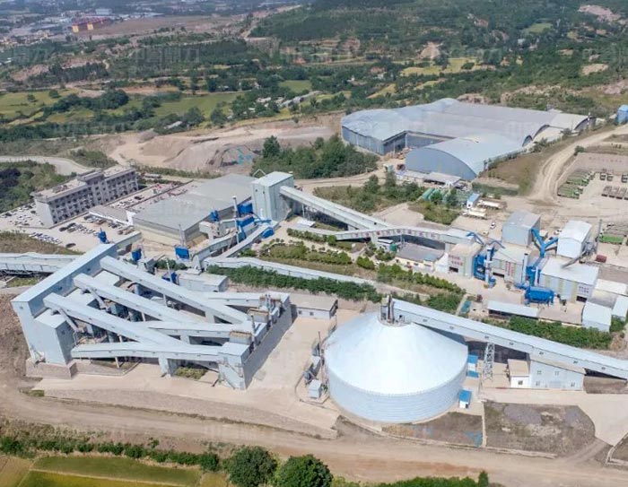 此项目设计分山上、山下两部分,破碎和一道筛分在山上完成,半成品骨料通过2公里长皮带廊道输送到山下筛分销售区。
